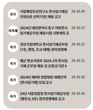 나라일터는 대한민국 인사혁신처에서 운영하는 공공 부문 채용 정보 포털입니다. 국가직, 지방직, 교육청 및 기타 공공기관의 채용 공고를 통합하여 제공하며, 직종과 직급별로 쉽게 접근할 수 있도록 구성되어 있습니다. 이를 통해 정부 기관의 채용 과정을 투명하게 공개하고, 공직 희망자들이 체계적으로 준비할 수 있도록 돕습니다.