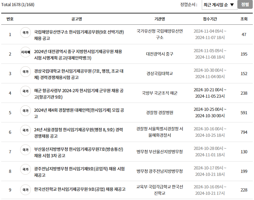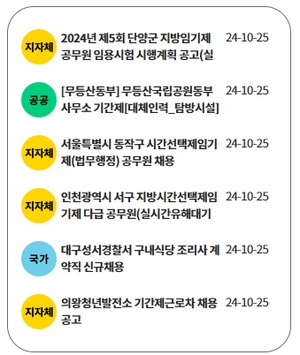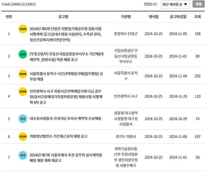 나라일터 홈페이지에서는 다양한 공공기관의 채용 정보를 손쉽게 검색할 수 있습니다. 채용 공고는 직종, 지역, 모집 기관 등 여러 기준으로 필터링이 가능하며, 원하는 직종에 대해 빠르게 접근할 수 있습니다. 예를 들어 '지방직 공무원'을 검색하면 관련된 모든 채용 공고를 확인할 수 있어 효율적인 정보 탐색이 가능합니다.