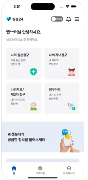 - 가족 보험 청구 지원: 본인뿐만 아니라 자녀와 가족의 보험 청구도 간편하게 할 수 있습니다.